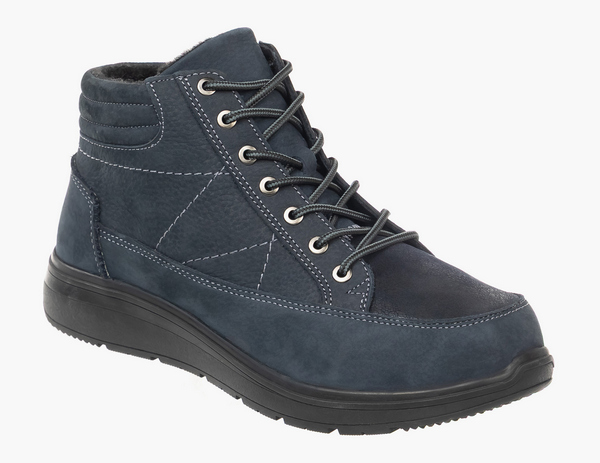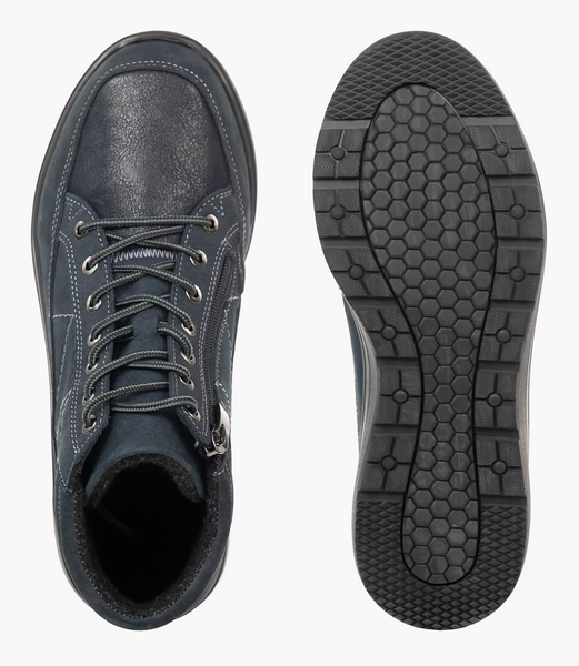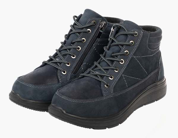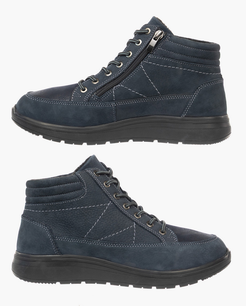 Ортопедическая обувь 242206 Sursil-Ortho из натурального нубука в стильном синем цвете на устойчивой подошве, с молнией с внутренней стороны и простой регулировкой полноты шнурками.